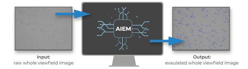 These images are analyzed by a real-time image processing software, the Artificial Intelligence-based Evaluation Module (AIEM).